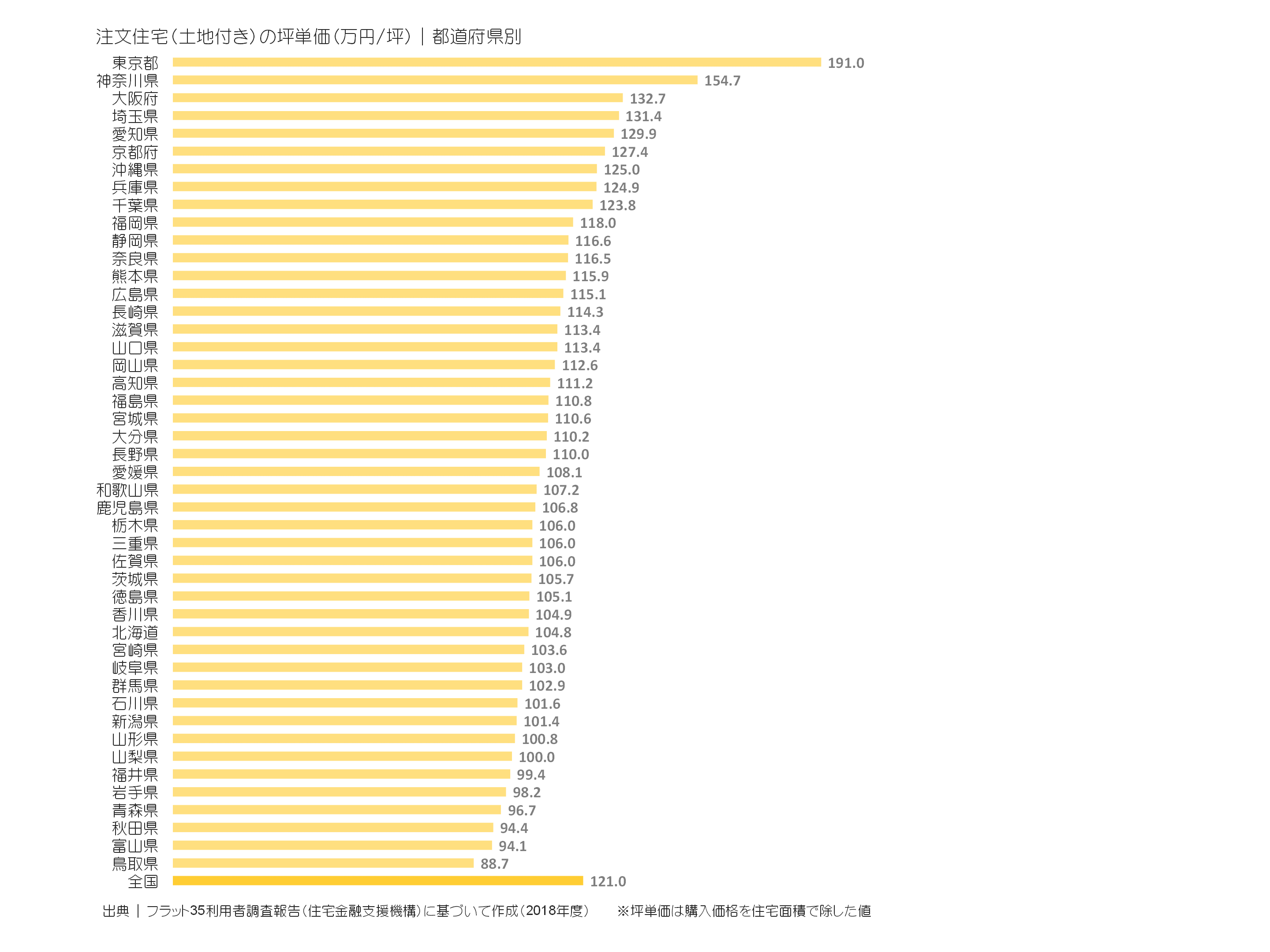 3)都道府県別でみた坪単価の水準|土地付き注文住宅